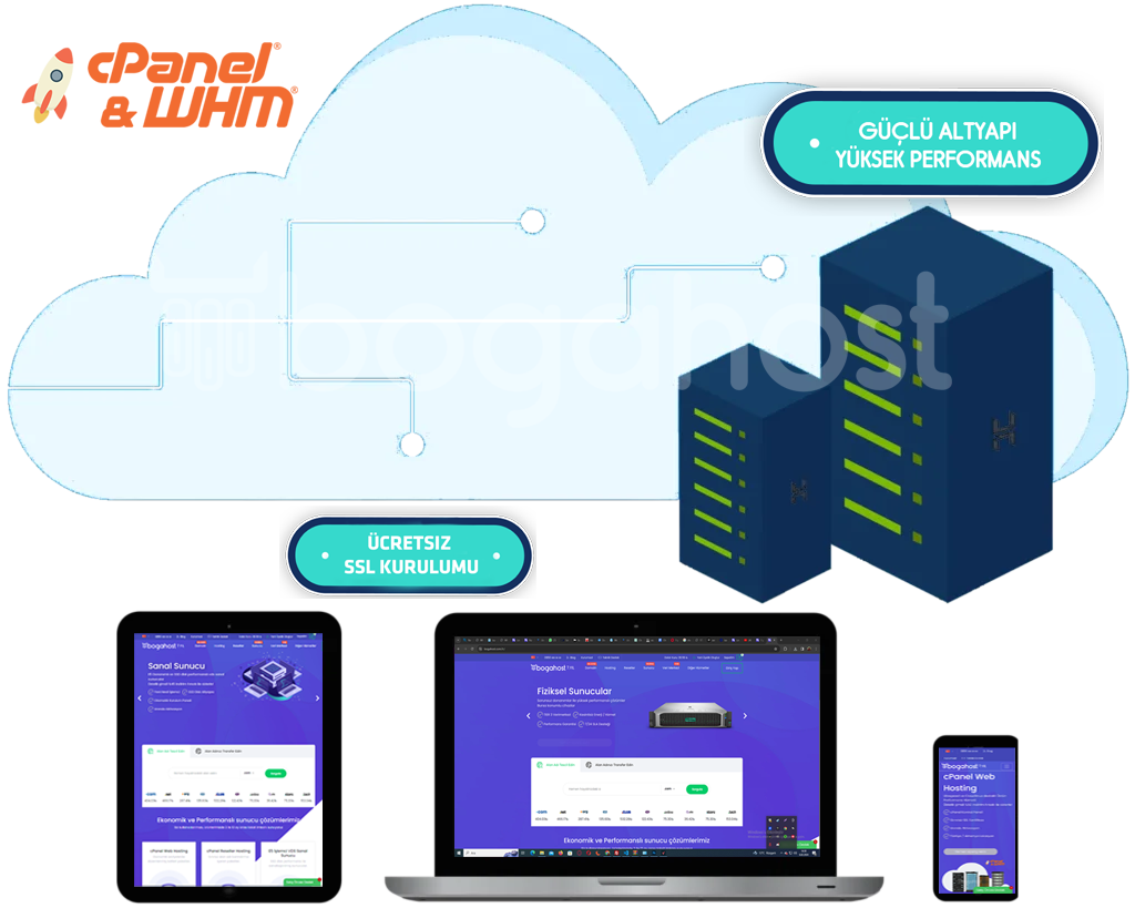 Bogahost’un cPanel ve WHM panelleriyle desteklenen hosting çözümleri, web sitenizin kontrolünü kolayca ele almanızı sağlar. Dosya yönetimi, e-posta ayarları ve veritabanı düzenlemeleri gibi işlemleri hızlı ve etkili bir şekilde gerçekleştirebilirsiniz. Kullanıcı dostu arayüzü sayesinde, teknik detaylarla uğraşmadan işlerinizi yönetebilirsiniz. Güçlü altyapımız, sitenizin kesintisiz çalışmasını ve ziyaretçilerinize her zaman erişilebilir olmasını sağlar. Hem bireysel projeler hem de kurumsal ihtiyaçlar için ideal olan bu hizmet, web varlığınızı güçlendirmek için mükemmel bir fırsat sunar.